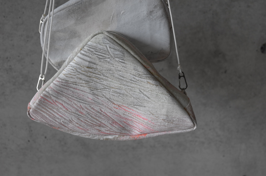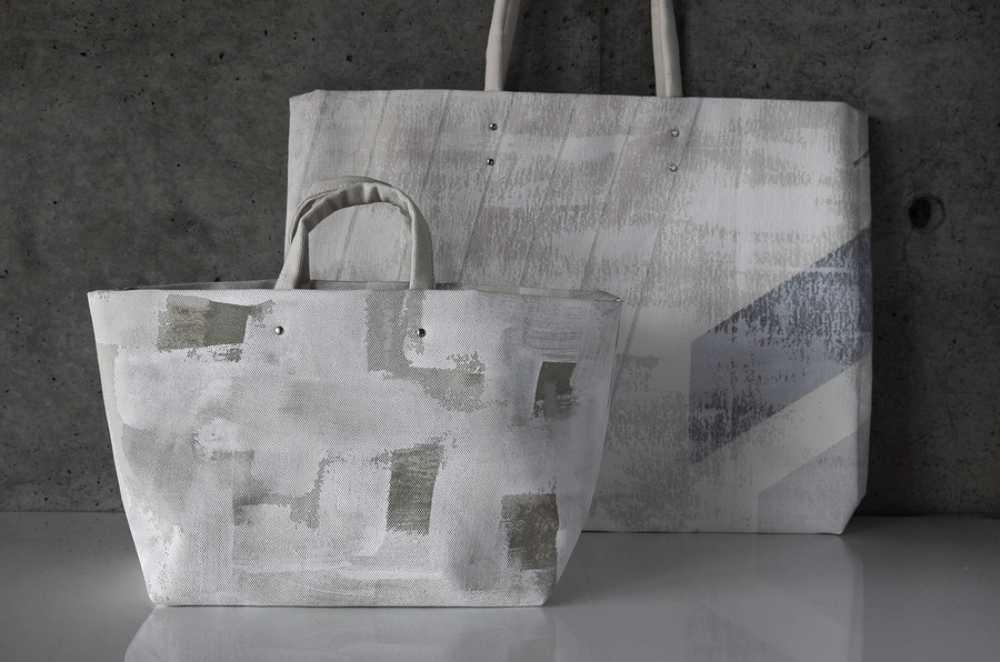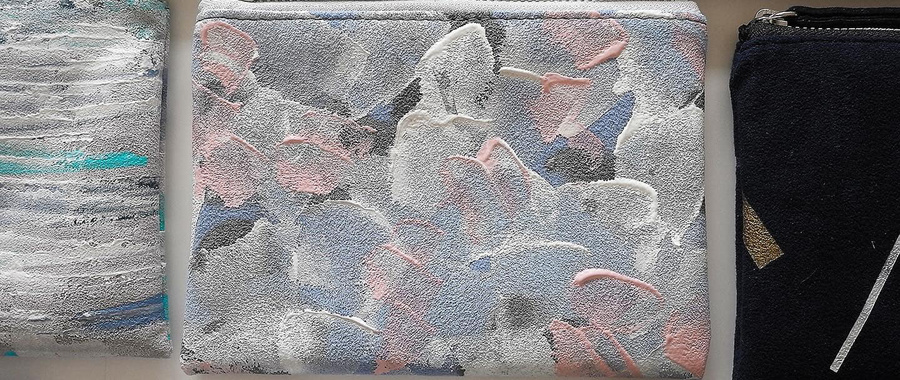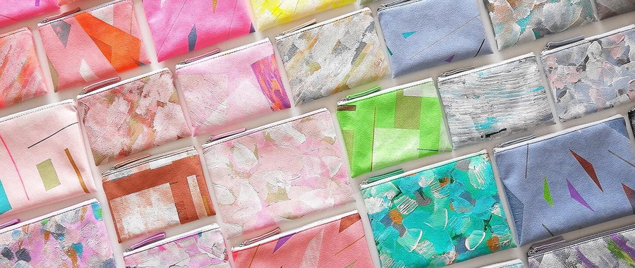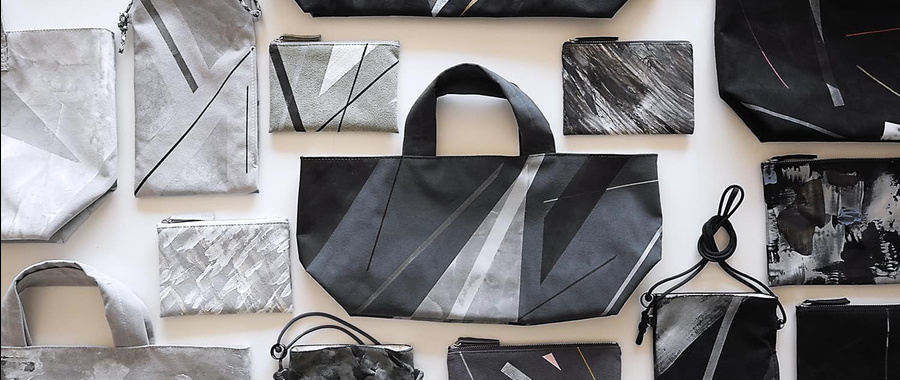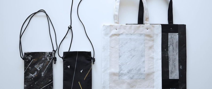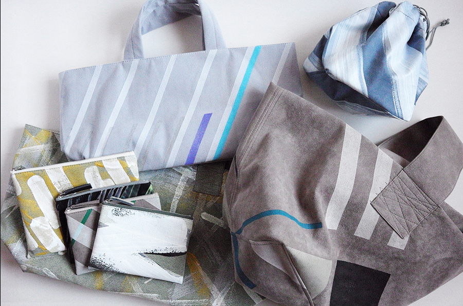 展示やシーズンごとにテーマを設け、キャンバス地やフェイクレザーに描くところから制作が始まります。