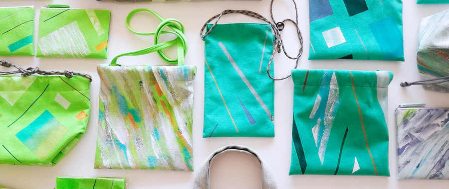 私たちは、ひとつの作品が生まれるすべての工程――デザイン、素材の選定、ハンドペインティング、縫製にいたるまで――に一貫して関わりながら、まるでアートピースをつくるようにプロダクトを制作しています。